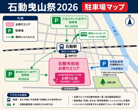 石動曳山祭 2026の駐車場&無料シャトルバス