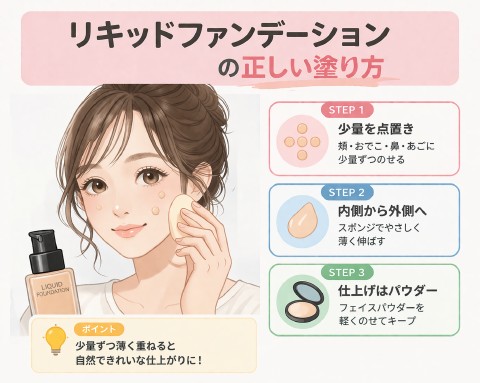 リキッドファンデーションの塗り方|初心者でも崩れない基本テク
